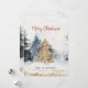 Share festive cheer with a card that shines. This elegant Christmas card features a beautiful watercolor winter scene with dark pine trees in the background, drawing attention to a single, festive golden glitter-like Christmas tree. The back of the card features a heartfelt message set against a snowy backdrop with gold flecks, making it a perfect keepsake. You can easily personalise the names, fonts, and colours to make this card uniquely your own. This design is also available as a convenient digital download.