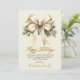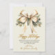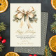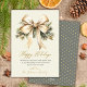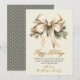 Watercolor Gold Bow Foliage Beige Christmas Holiday Card