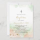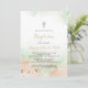 This watercolor gold confetti baptism invitation is perfect for a rustic baby baptism or christening. The design features a watercolor pink, green and white background with gold glitter confetti splash.
