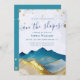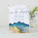 Modern Vintage Elegant Wedding Bachelorette Party Invitations Template - Blue Green and Faux Gold Foil Watercolor Mountains Landscapes Scenery.
