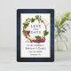 Modern Elegant Watercolor Grapes and Vines Wood Wreath Save The Date Wedding Announcement Card - Rustic Country Blue Wood Background with Gold Frame.