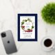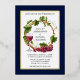 Modern Elegant Watercolor Grapes and Vines Wood Wreath Wedding Invitation - Navy Blue Background and Gold Foil Frame