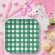This bright and fun paper plate features a watercolor green and white plaid pattern.