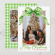 Watercolor Green Gingham Bow Christmas Photo Holiday Card