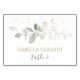 Elegant flat place card featuring an illustration of green and gold foliage in watercolor style. On the top of the card - gold effect confetti. You can change the table number to your requirements (2, 5...7...10...) - each time a new card, and add all these cards to your cart.
