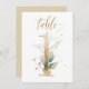 Beautiful table number card with a botanical motif - a watercolor illustration of green and gold leaves. Table 1. Please, check all available numbers