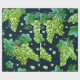 Watercolor green grape, leaves on dark background. Seamless pattern. Vegetarian food drawing. Fresh fruit, natural berry. Watercolor botanical illustration.