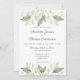 This Elegant Wedding Invitation is designed with Soft Watercolor Leaves in light and dark shades of summer green, on a white background. The front text includes: The Bride and Groom's Names, Wedding Date, and Location. The reverse side text includes: Reception Details on a soft green background. Be sure to view this Watercolor Green Leaves Elegant Wedding Collection for matching stationery and accessories.