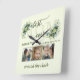 Watercolor Green Leaves Mum Photo Square Wall Clo Clock