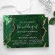 Modern Elegant Watercolor Emerald Green and Gold Marble Agate Geode Wedding Invitation. Trendy Calligraphy Script.