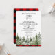 Watercolor Green Pine Tree & Red Buffalo Plaid Invitation