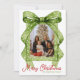 Watercolor Green Polka Dot Bow Christmas Photo Holiday Card