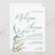 Gorgeous green watercolor seaweed finishes off this simple these simple, yet modern wedding invitations. Perfect for a beach themed wedding.