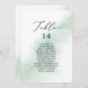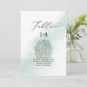 These watercolor green table number seating chart cards are perfect for a modern wedding. The simple and classic design features a splash of pastel sage green water colour with minimalist elegant style. The card prints on the front and back (double-sided).