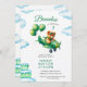 Watercolor Green Teddy Bear Aeroplane 5th Birthday Invitation