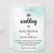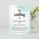A wedding invitation featuring is a watercolor green wedding invitation. It is perfect for a modern wedding. The simple and classic design feature is a splash of pastel green water colour with minimalist elegant style.