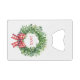 This Christmas holiday bottle opener features a green wreath with red gingham bow. Personalise the front and back with your choice of date and special text. Great for personalised party favours and gift bags.