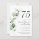 Cute and modern, yet elegant 75th birthday party invitations. Featuring a trendy layout and watercolor floral and greenery eucalyptus and pink blush. Perfect for any age birthday party invitation. The template that can be easily edited and the text replaced with your own details by clicking the "Personalize" button. For further customization, please click the "Customize Further" link and use our design tool to modify this template.
