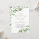 Invite family and friends with this whimsical greenery invitation. This wedding shower invitation features watercolor illustrations of green foliage and white flowers and matching greenery pattern with gold script. Personalise by adding names, date, time, venue and other event details. This invitation is perfect for spring and garden wedding showers. Choose between the wide array of paper types to suit your occasion.