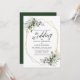Modern Calligraphy Script Elegant Watercolor Botanical Greenery Wedding Invitation Card includes eucalyptus leaves, green botanical foliage, dusty blue leaves and other beautiful botanical greenery. Gold Geometric Frame, Green Back