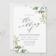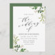 Elegant, botanical wedding invitations featuring watercolor foliage in shades of spring and moss green at the corners of the design. The phrase "The Wedding Of" is displayed in a chic calligraphy script. Personalise the boho greenery wedding invitation with your names wedding details. The modern botanical wedding invitation is perfect for spring and summer weddings.