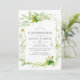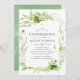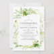 Green and white confirmation invitation featuring ferns, wildflowers and strawberries and a sage green watercolor wash background.
