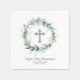 An elegant watercolor wreath of sage green leaves and flower buds and a cross, these napkins are perfect for your child's First Communion, Christening, Baptism, Dedication or any religious event. Available in blue, pink and sage. MATCHING items in our store.