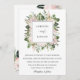Beautiful bohemian style flowers and foliage in shades of dusty mauve, peach, blush and green, wedding invitation. Back of card features matching floral arrangements.