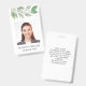 This employee's Company ID security badge features a photograph and logo template on a botanical watercolor greenery background.