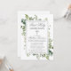 Modern Elegant Watercolor Botanical Greenery First Holy Communion Invitation includes eucalyptus leaves and other beautiful foliage. Silver Cross. Silver Grey Script.