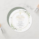 Featuring delicate watercolor leaves and an elegant gold crucifix, this chic circular first holy communion invitation can be personalised with your special information, with a silver sage background on the reverse. Designed by Thisisnotme©