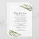 Watercolor greenery foliage. Floral script baptism Invitation