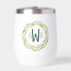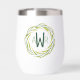 Watercolor greenery forms a frame wreath and provides an elegant setting for your name, initials or monogram on this elegant thermal wine tumbler design. Use the provided template to add your initials as shown. Search ID667 to see other products with this design.