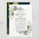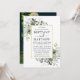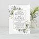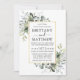 Modern Elegant Watercolor Botanical Greenery Wedding Invitation Card includes eucalyptus leaves, green botanical foliage, dusty blue leaves and other beautiful botanical greenery. Gold Frame, Photo Back