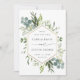 This elegant wedding save the date invitation features painted watercolor eucalyptus, green leaves, flowers with a faux gold geometric hexagon frame. For more advanced customisation of this design, please click the "Customise further" link. Matching items are also available.