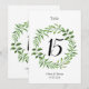 Elegant greenery wedding table numbers with watercolor green leaves wreath. Great for spring nature weddings and other modern botanical garden theme events.
