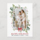 Elegant Watercolor Winter Greenery Happy Holidays Photo Postcard includes eucalyptus leaves and red holly berries. Red Bow Ribbon.