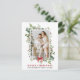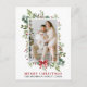 Elegant Watercolor Winter Greenery Merry Christmas Holiday Photo Postcard includes eucalyptus leaves and red holly berries. Red Bow Ribbon.