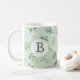 This mug features a watercolor wreath with green leaves and foliage. You can personalise the text with an initial. Please visit the collection page in our store to see the full range of bridal and wedding matching products featuring this design.