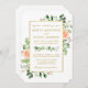 Watercolor Greenery Peach Roses Gold Wedding Invitation