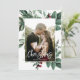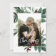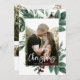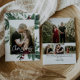 This is a merry Christmas double sided flat card featuring modern script typography, watercolor greenery & foliage and oval photo. Features 5 photos in total. Photos by prostooleh / Freepik.