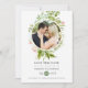 Trendy greenery wedding save the date card with gold frame designed to be quickly and easily customised to your event specifics.