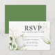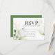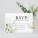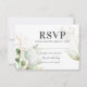 Elegant eucalyptus wedding response cards featuring a classic white background, a modern watercolor display of woodland green foliage, trendy gold floral accents, and a stylish rsvp template that is easy to personalise.