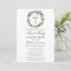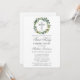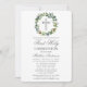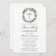 Elegant Watercolor Greenery Wreath First Holy Communion Invitation includes eucalyptus leaves, blue leaves and other botanical greenery. Silver Cross. Silver Grey Script.