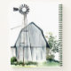 Watercolor Barn I by Jennifer Paxton Parker. Grey-white coloured barn with greenery and a small windmill.