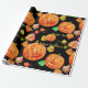 Watercolor happy Halloween pumpkin pattern wrapping paper Background: black - can be customised