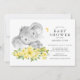 Adorable cheerful elephant with pretty yellow flowers baby shower invitation for a gender neutral baby shower.