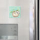 An adorable watercolor graphic features smiling sloth hangs from a branch on aqua and gold dot background