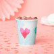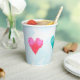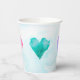 Blue watercolored cup with colourful pink, turquoise, and purple painted hearts. Coordinates with our Art Party Collection.
