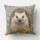 Watercolor Hedgehog and Colourful Wildflowers Cushion